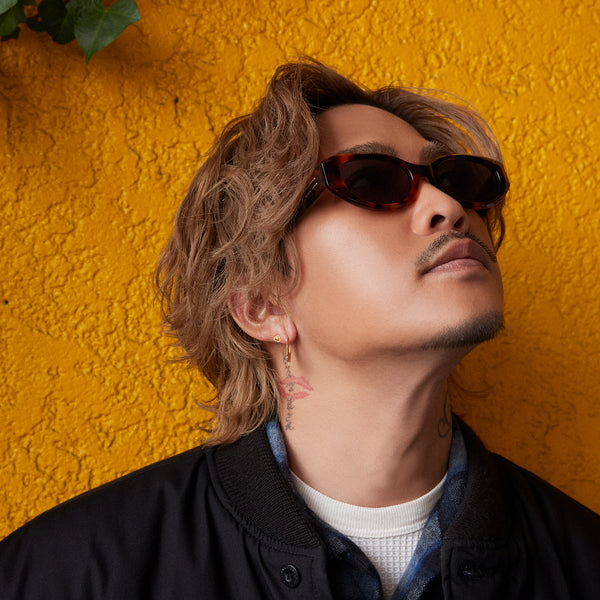 顔に馴染みやすいシルエットとボリュームのある大胆なフレームで、表情の変化を楽しめます。